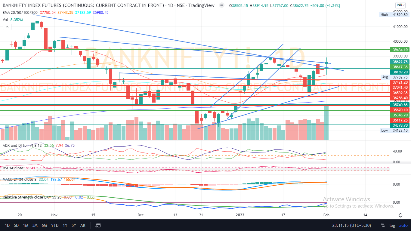 Banknifty future has moved from 34150 (20th Dec 2021) to 38965.65 (18th Jan 2022). On 1st Feb 2022, it has closed above the resistance - 38617.35