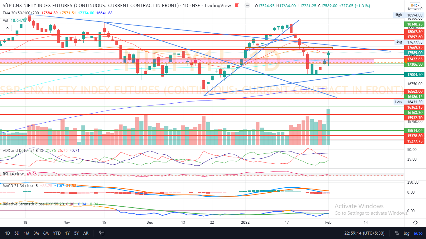 Niftyfut Range: 16650 - 18067 for this week (31st to 4th Feb 2022), If it moves above the resistance of 18067 then it can move further till 18244-18350.